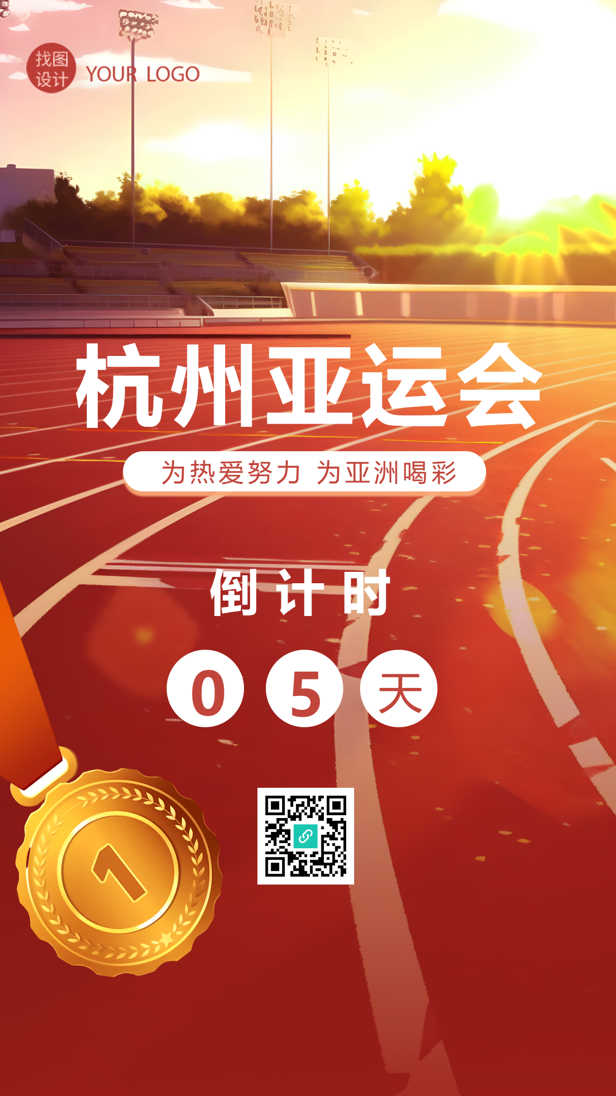 运动场跑道实景杭州亚运会倒计时手机海报