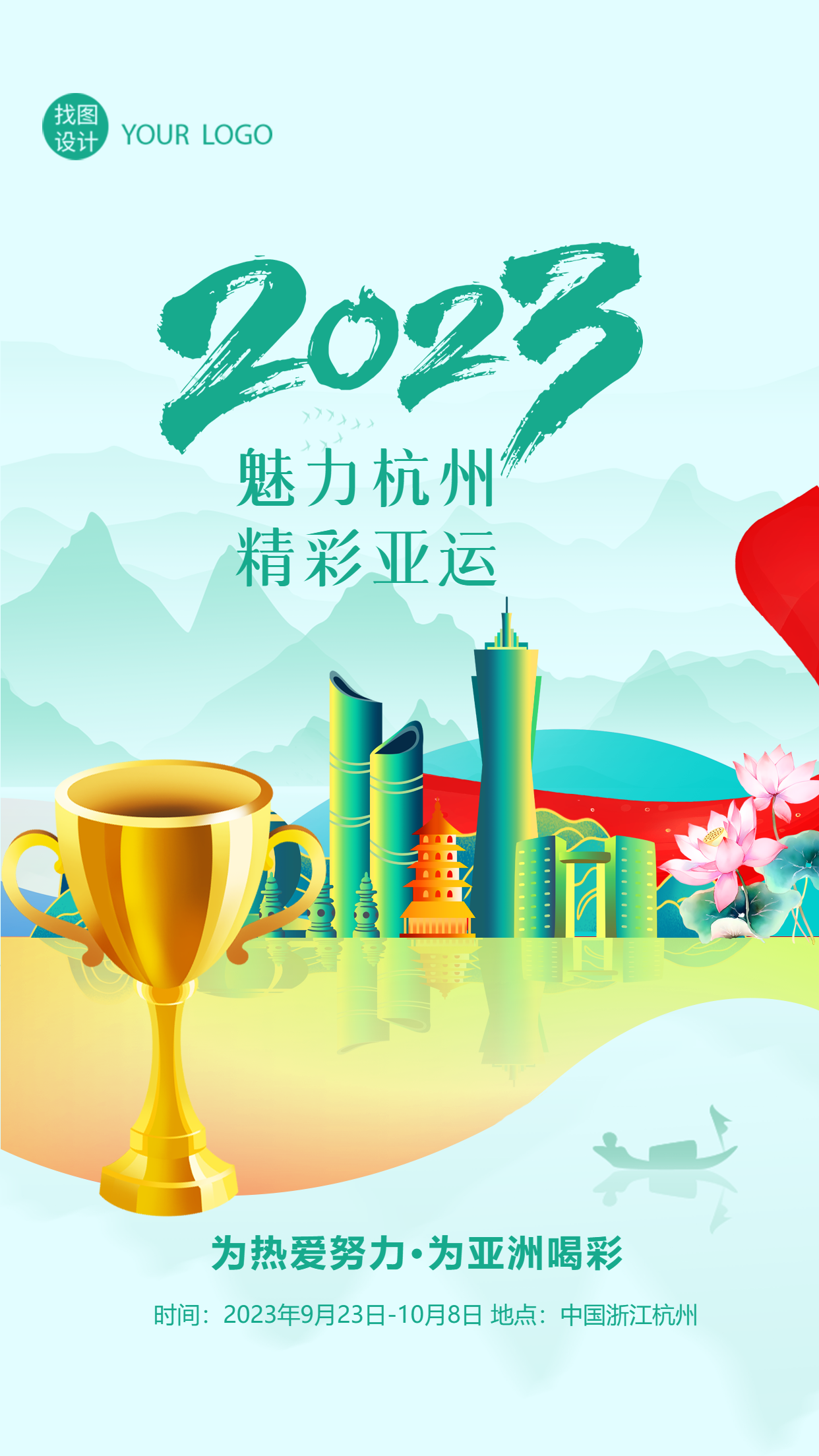 2023魅力杭州精彩亚运国风远山手机海报
