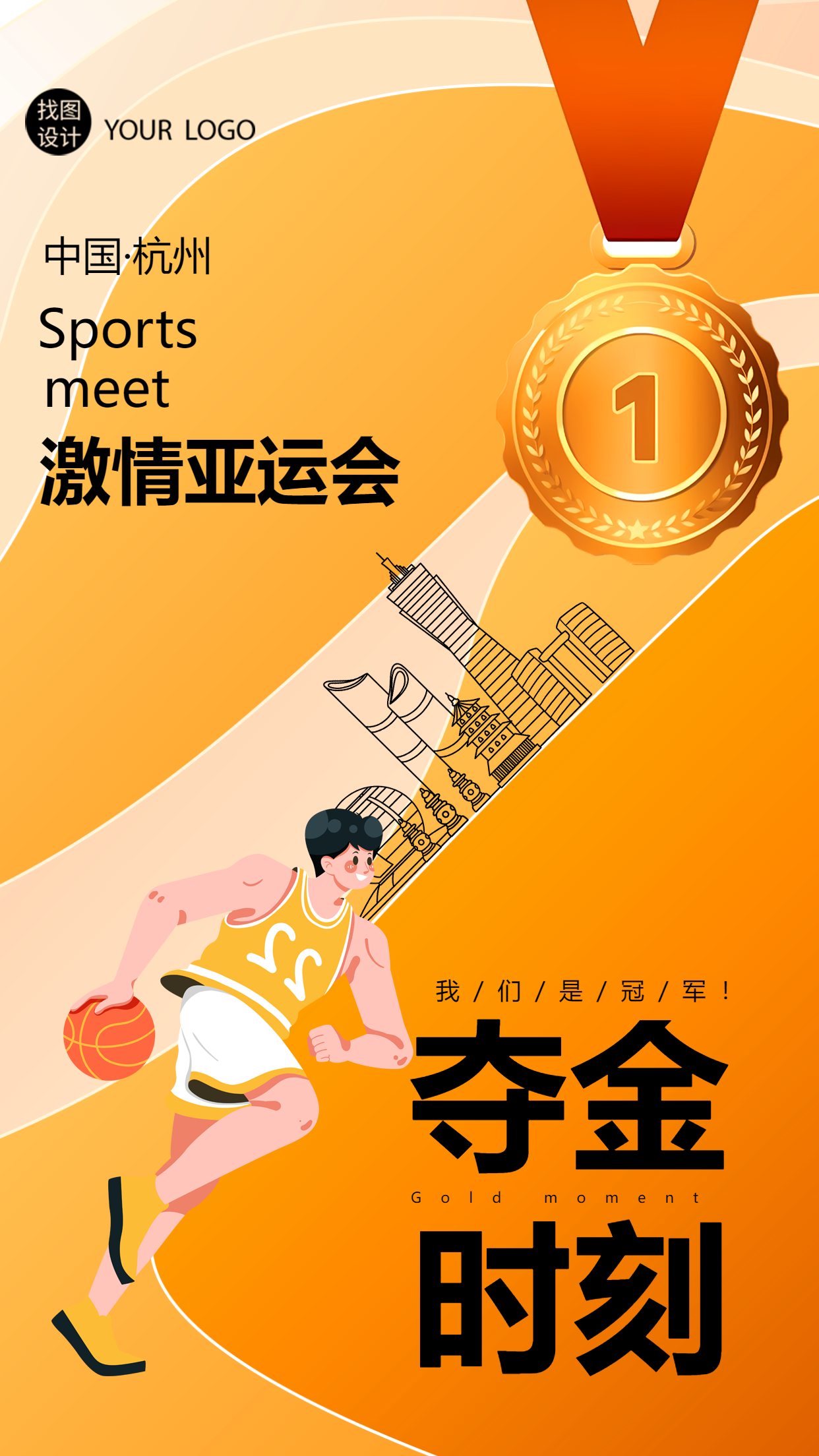 中国·杭州激情亚运会夺金时刻手机海报