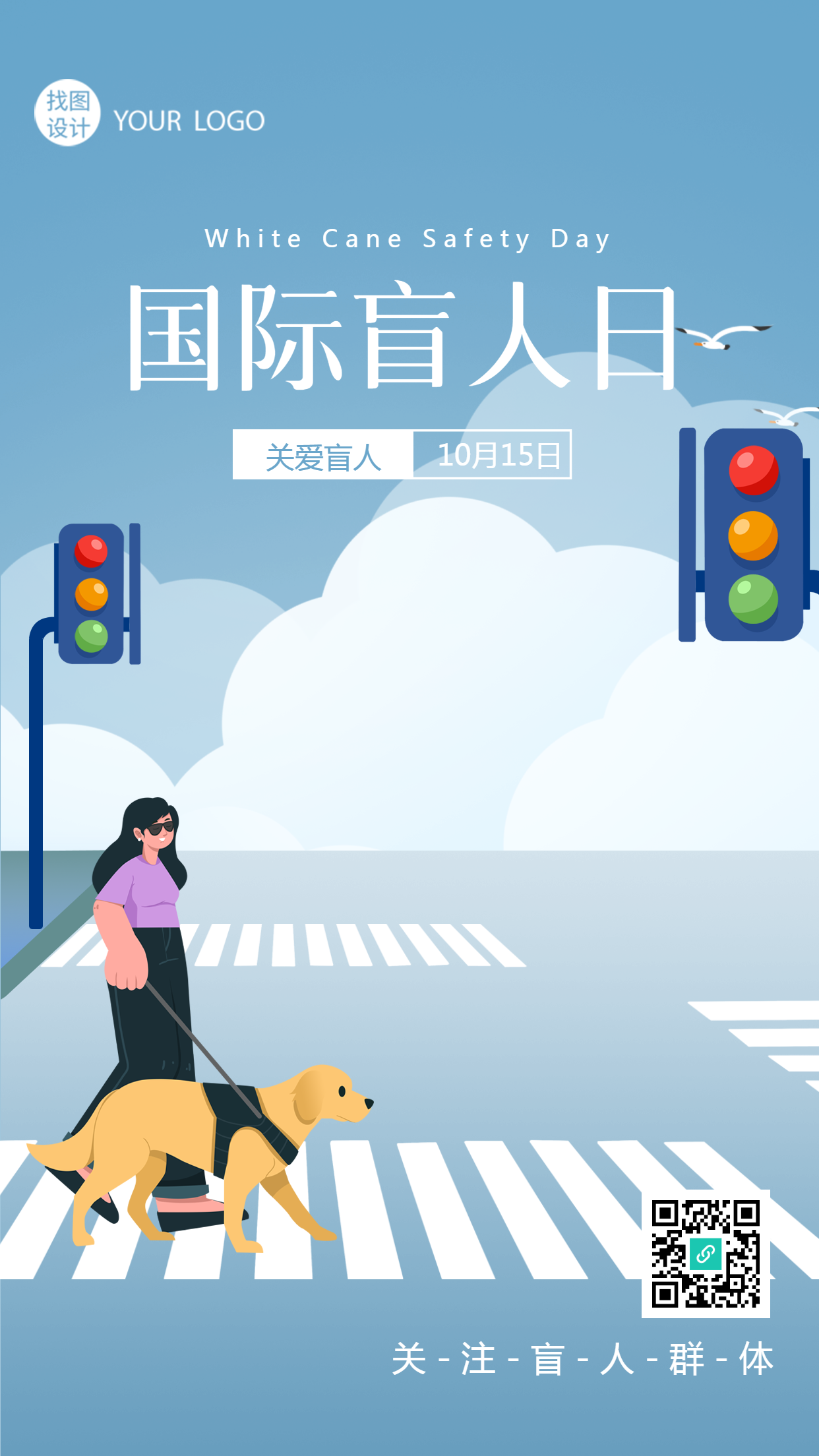 10月15日国际盲人日关注盲人群体手机海报